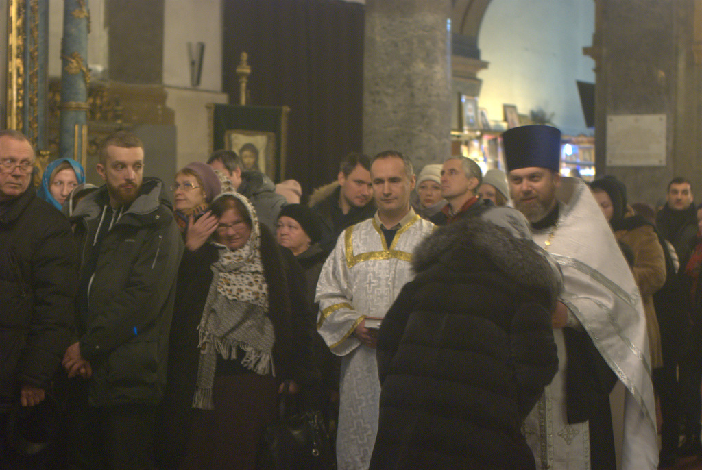 Утром в соборе состоялась вторая праздничная Божественная литургия которую возглавил иерей Святослав Булах, на которую пришли около 110 человек. По сложившейся традиции на службе было много детей. Одних причастников, по нашим скромным подсчетам, было около 70 человек.