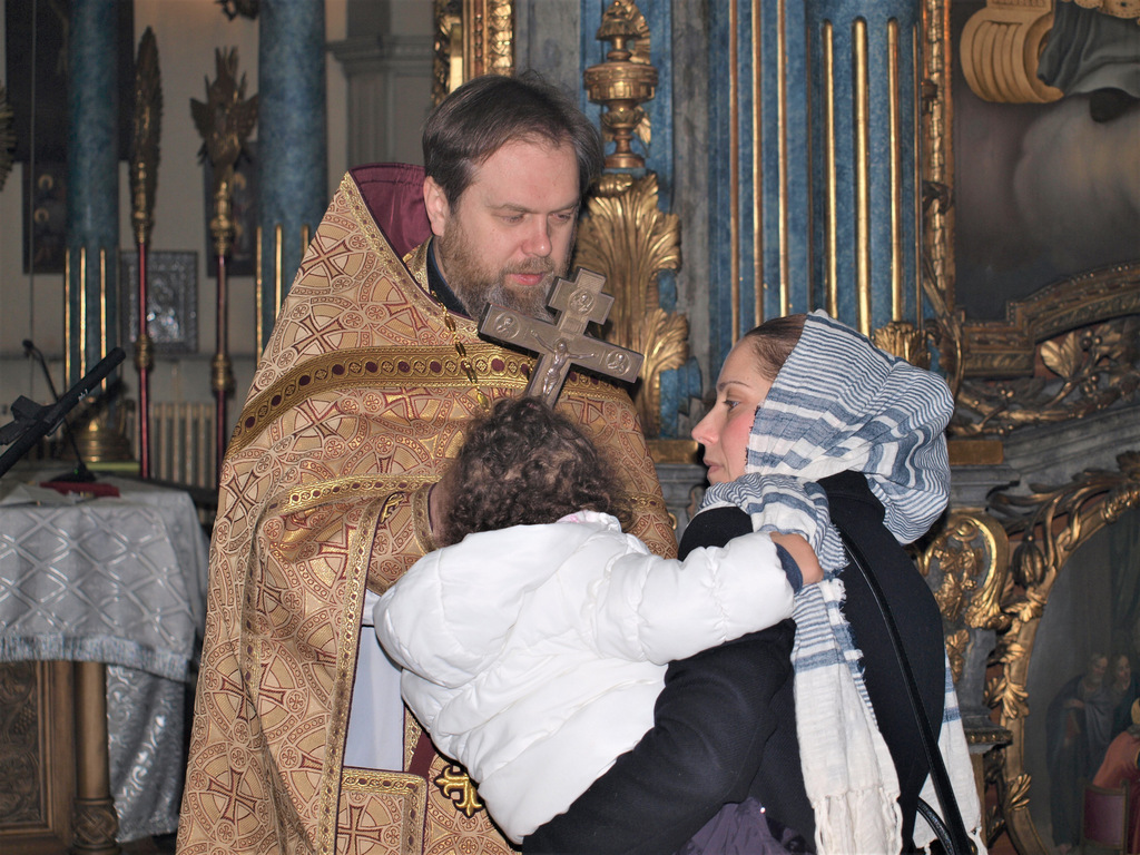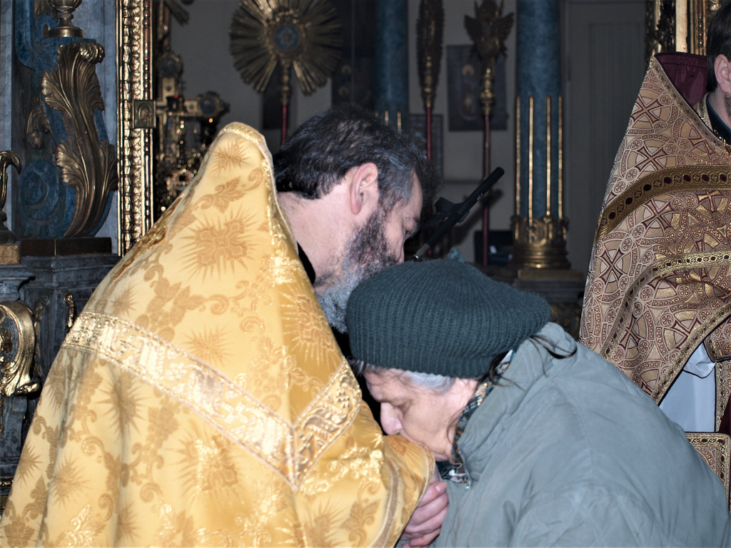 В конце службы отец Димитрий коленопреклоненно попросил прощение у клириков и прихожан, в свою очередь все молящиеся приложивщись к иконам подходили ко кресту так же испрашивая прощения у настоятеля и священнослужителей.