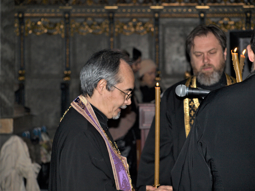 Ему сослужили клирик прихода иерей Святослав Булах, а также настоятель прихода в честь иконы Божией Матери «Живоносный источник» протоиерей Николай Ким и диакон Владимир Чепыжов.