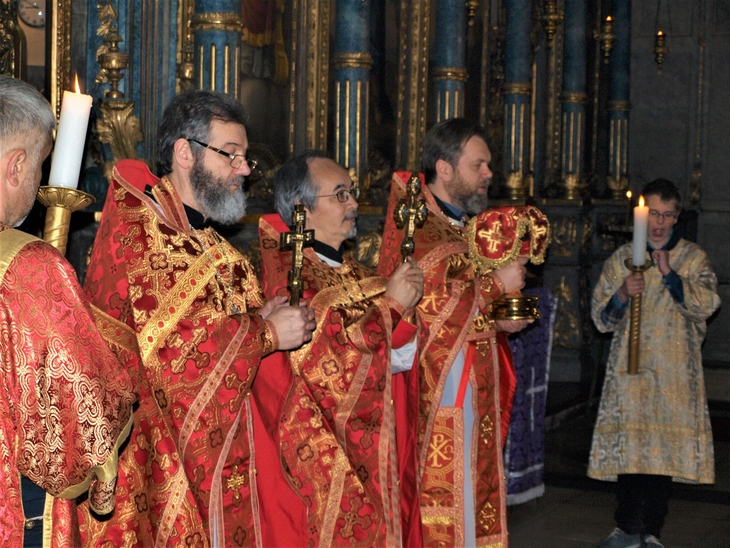 В Великий Четверг ранним утром в Кафедральном соборе Будапешта настоятель прихода во имя Святой Троицы иерей Димитрий Корнилов в сослужении настоятеля Хевизкого прихода во имя иконы Божией Матери Живоносный Источник протоиерея Николая Кима, помощника правящего архиерея Святослава Булаха и диакона Владимира Чепыжова совершил Божественную литургию.