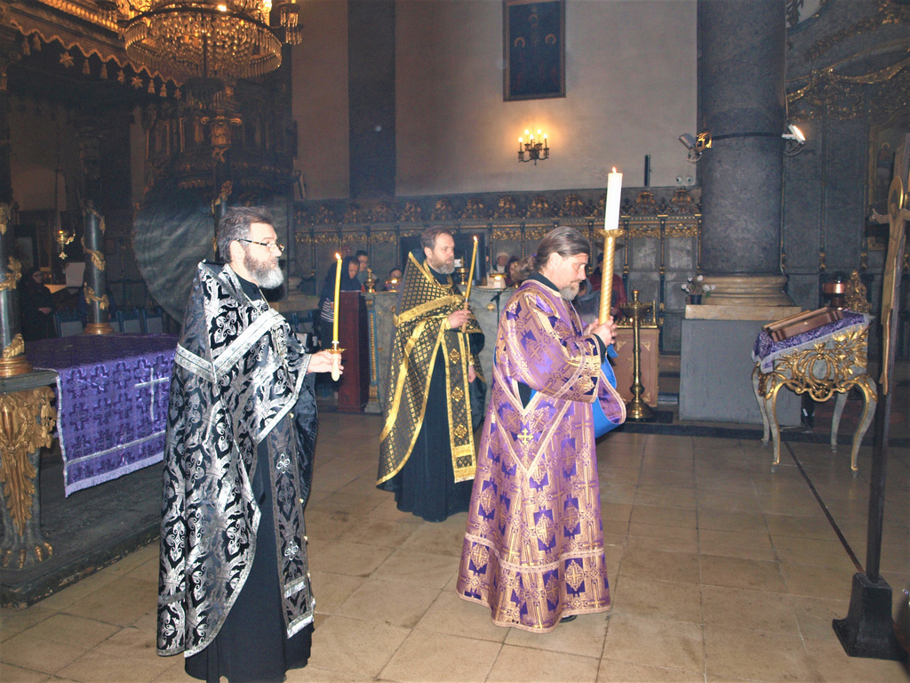 Вечером в Великий Четверг в Кафедральном соборе Будапешта служилась утреня Великого Пятка с чтением 12-ти Евангелий Святых Страстей Господа нашего Иисуса Христа. Службу возглавил протоиерей Иштван Мадьяр, ему сослужили настоятель прихода во имя Святой Троицы иерей Димитрий Корнилов, помощник правящего архиерея Святослав Булах и протодиакон Николай Дадани.