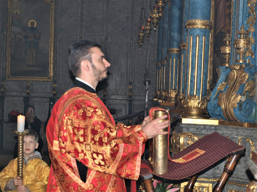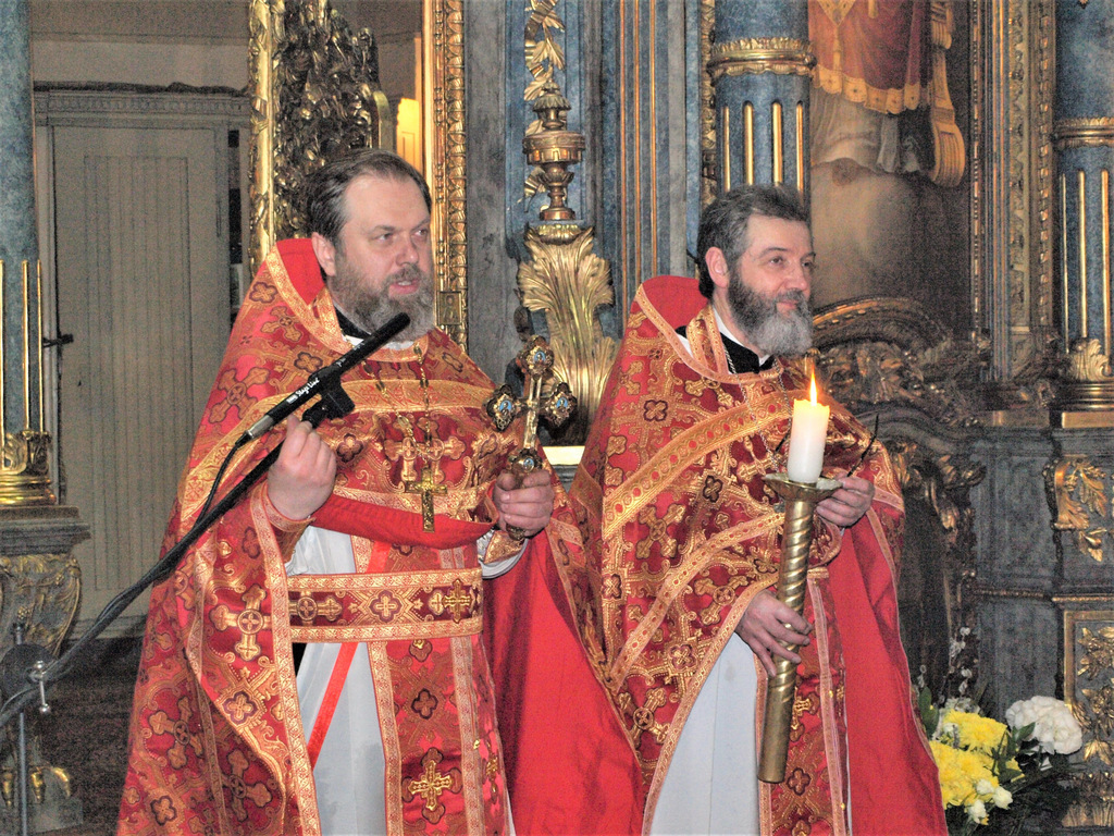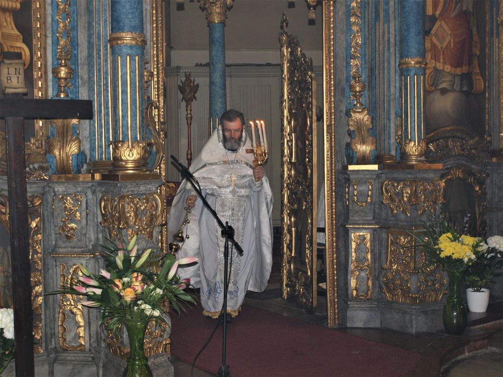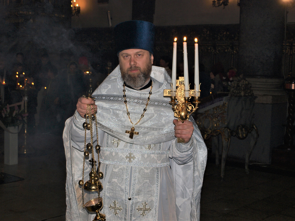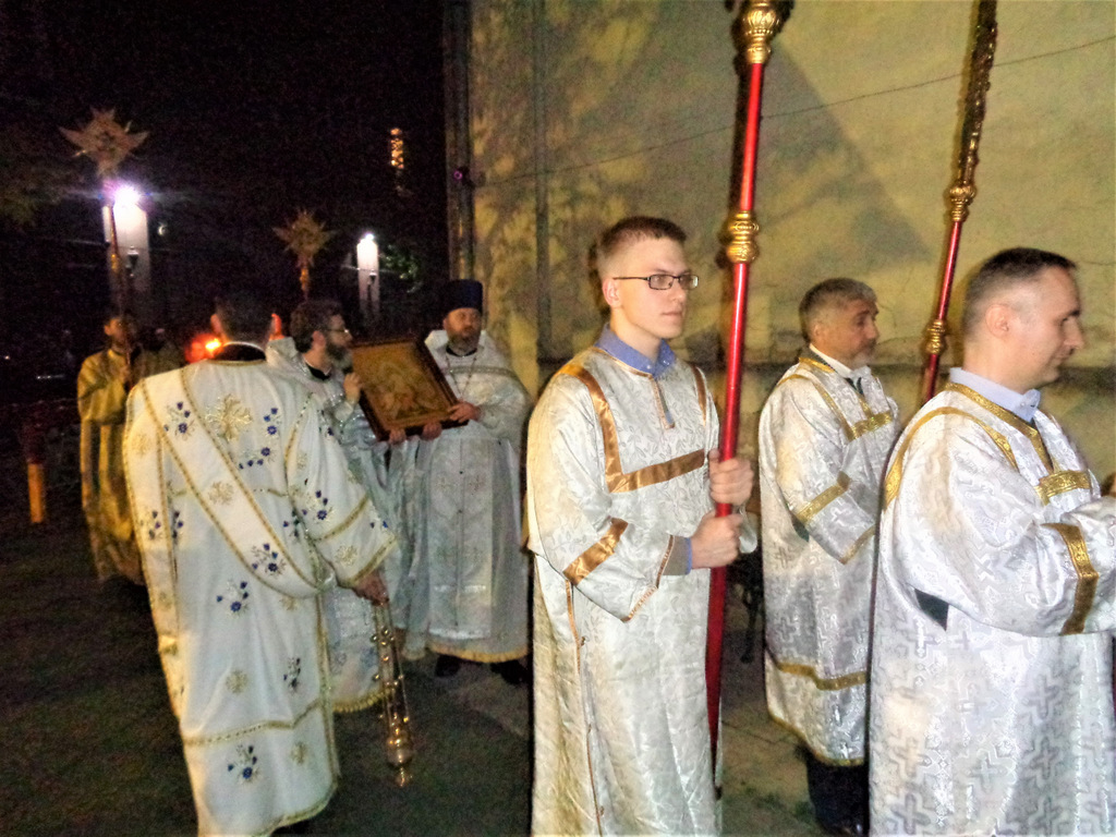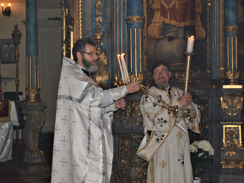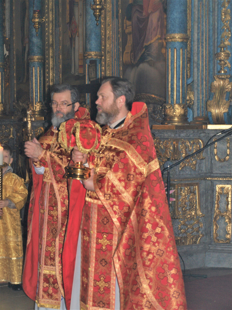 После, сразу началась ночная Божественная литургия которую возглавил отец Димитрий, ему сослужили помощник правящего архиерея Святослав Булах и диакон Стефан Вайно-Элиаш.