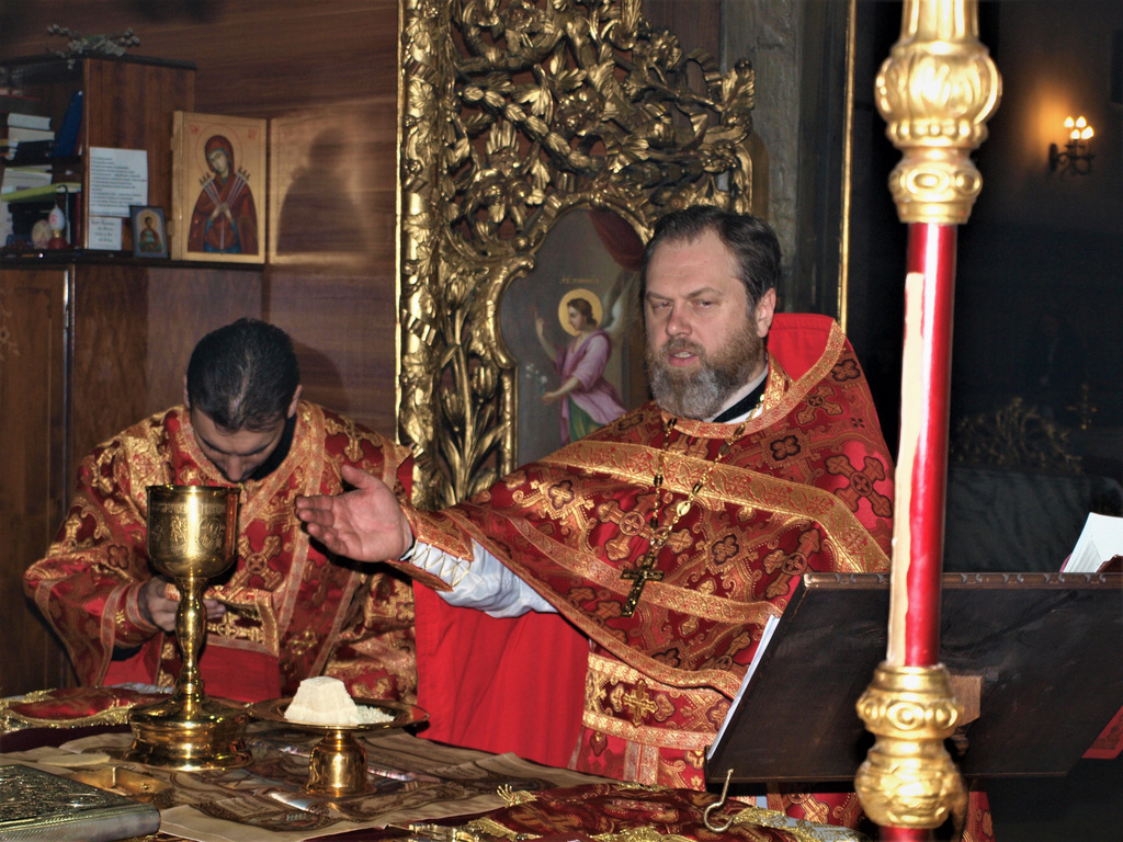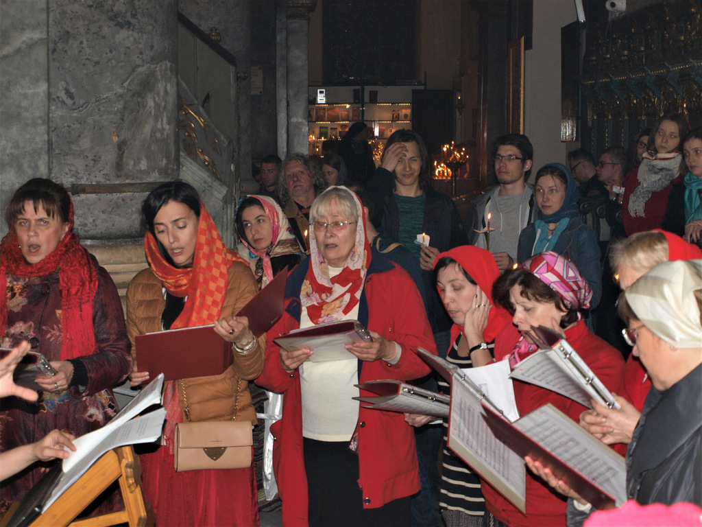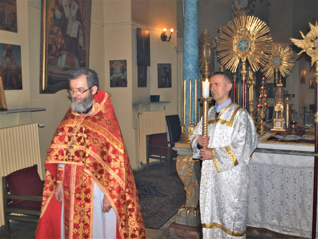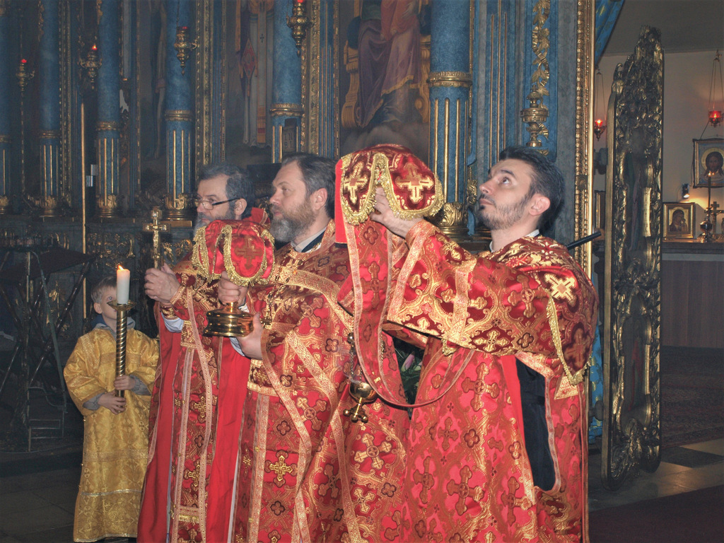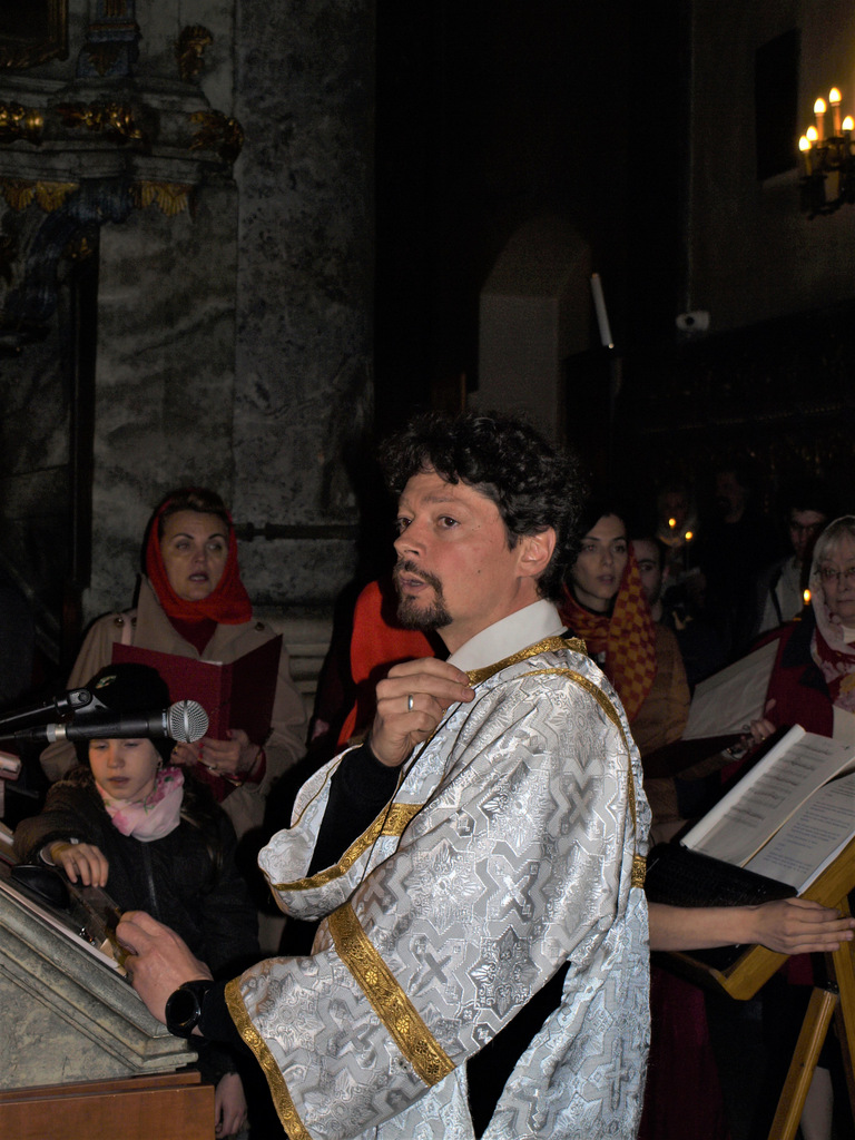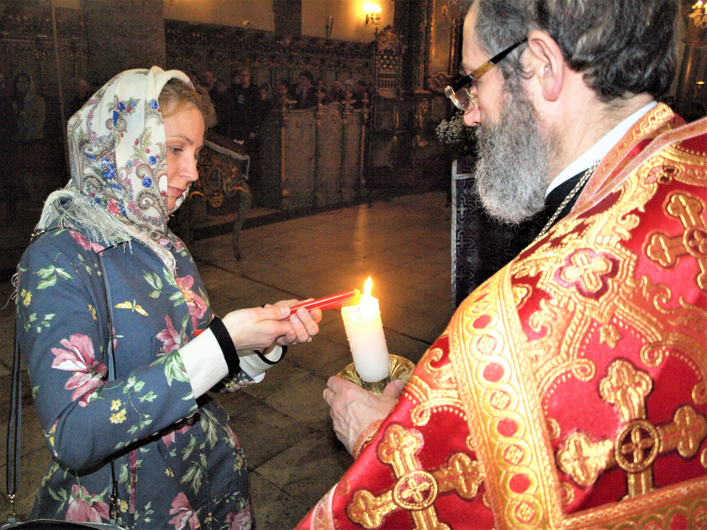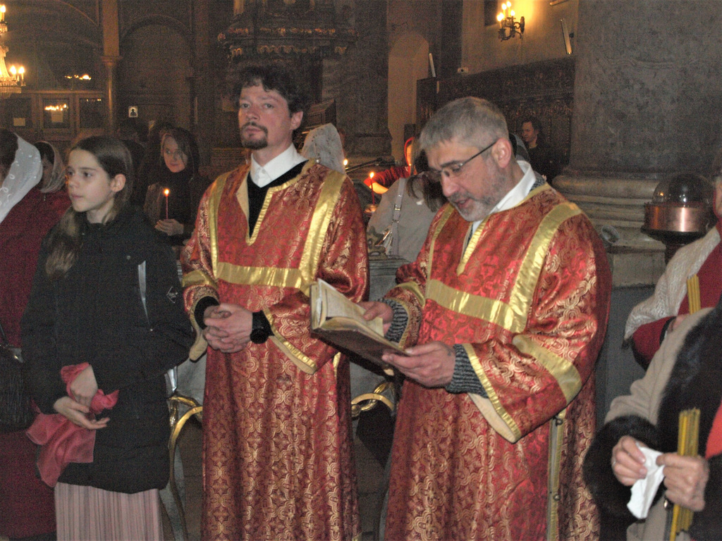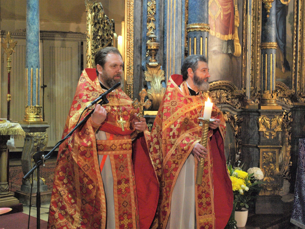 После, сразу началась ночная Божественная литургия которую возглавил отец Димитрий, ему сослужили помощник правящего архиерея Святослав Булах и диакон Стефан Вайно-Элиаш.