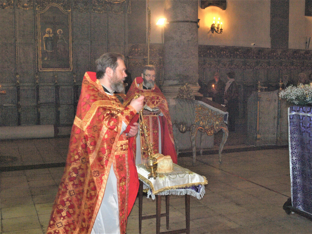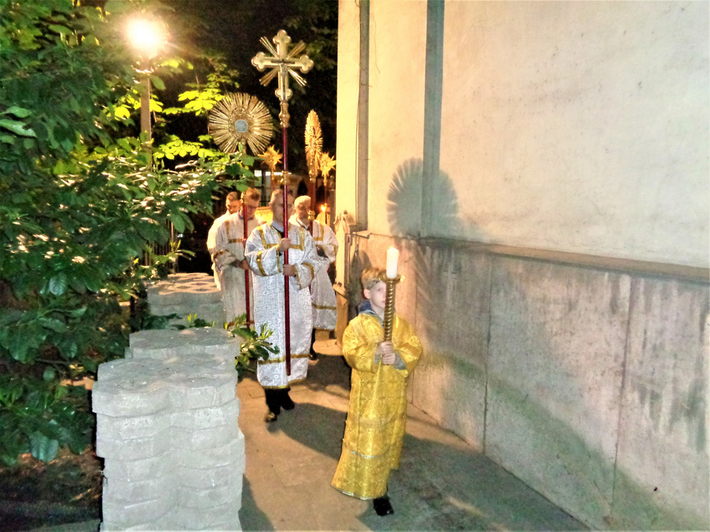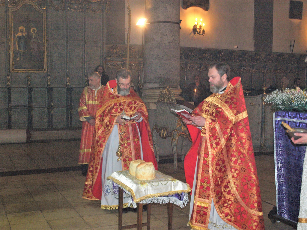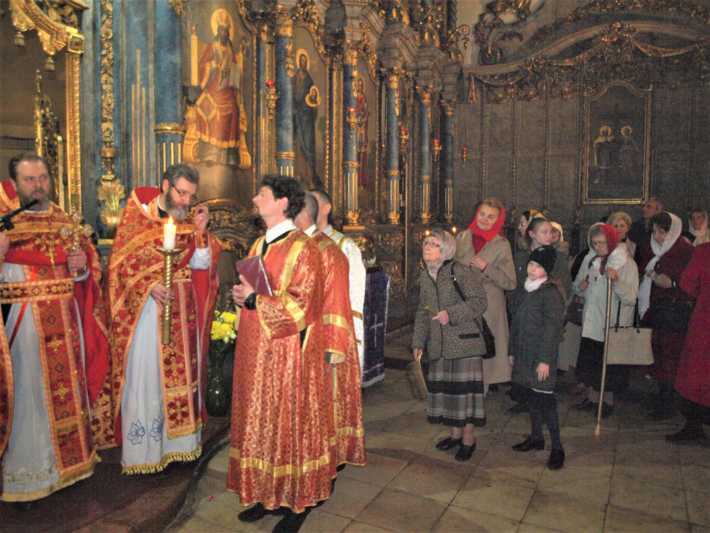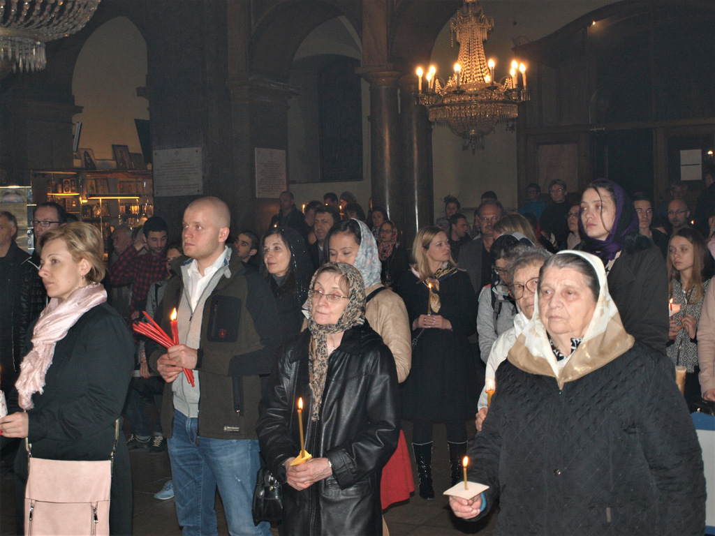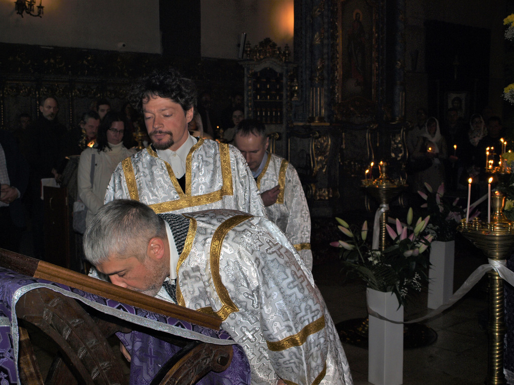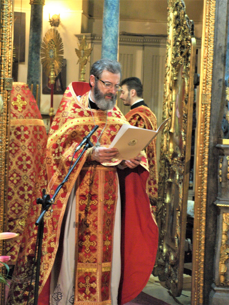 После, сразу началась ночная Божественная литургия которую возглавил отец Димитрий, ему сослужили помощник правящего архиерея Святослав Булах и диакон Стефан Вайно-Элиаш.