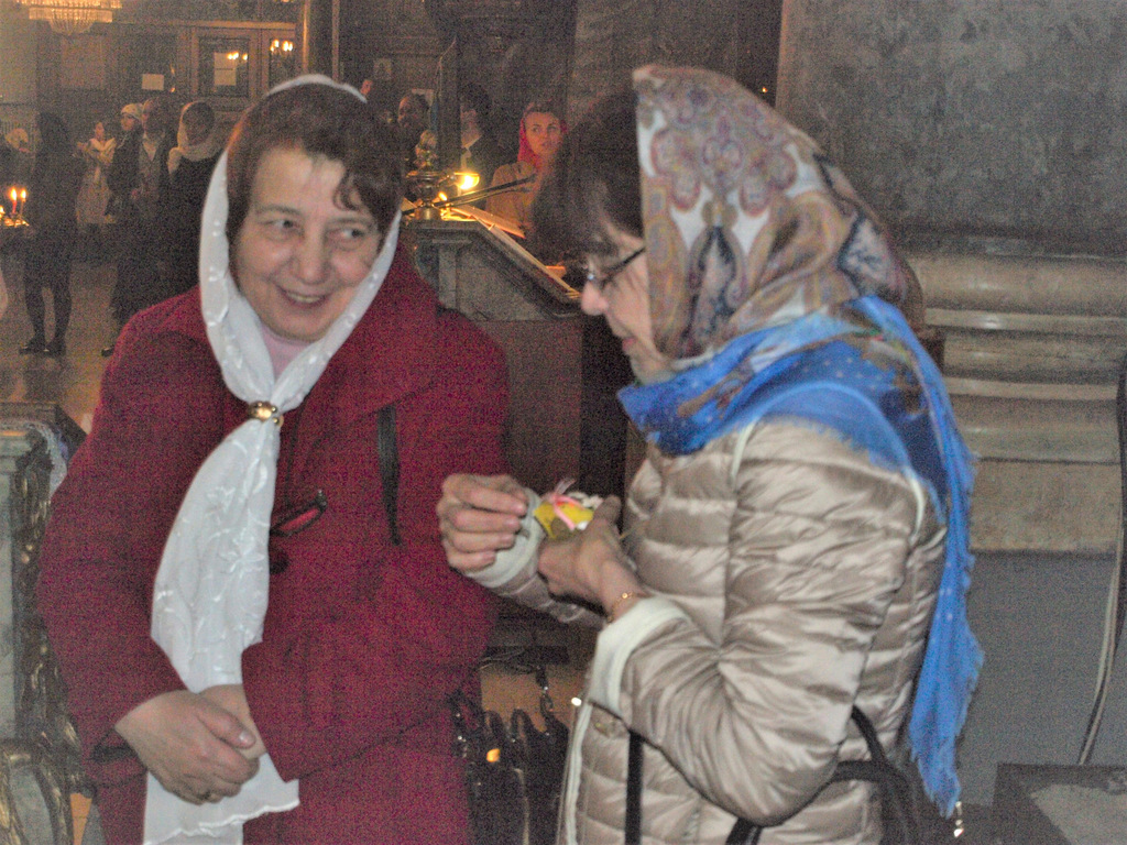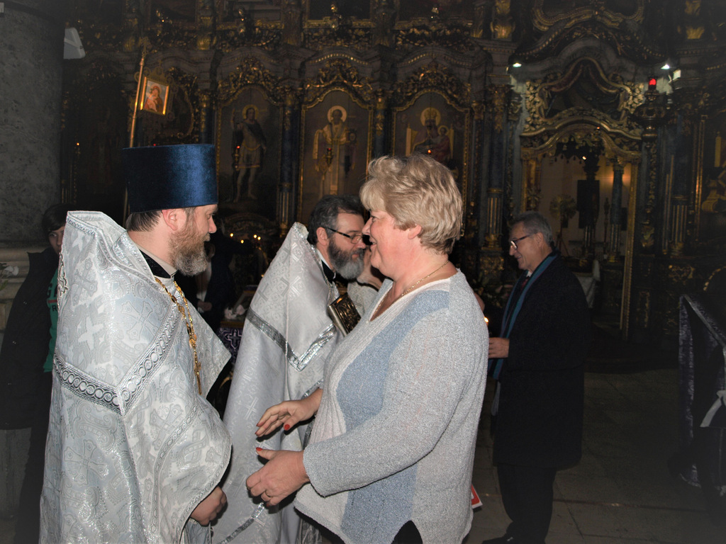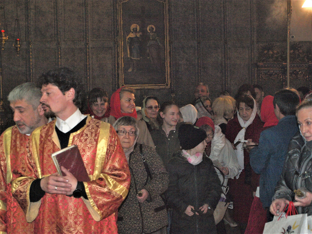 По окончании Литургии, иерей Димитрий тепло поздравил всех собравшихся с Пасхой Христовой. Все обменивались подарками, поздравляли друг друга.