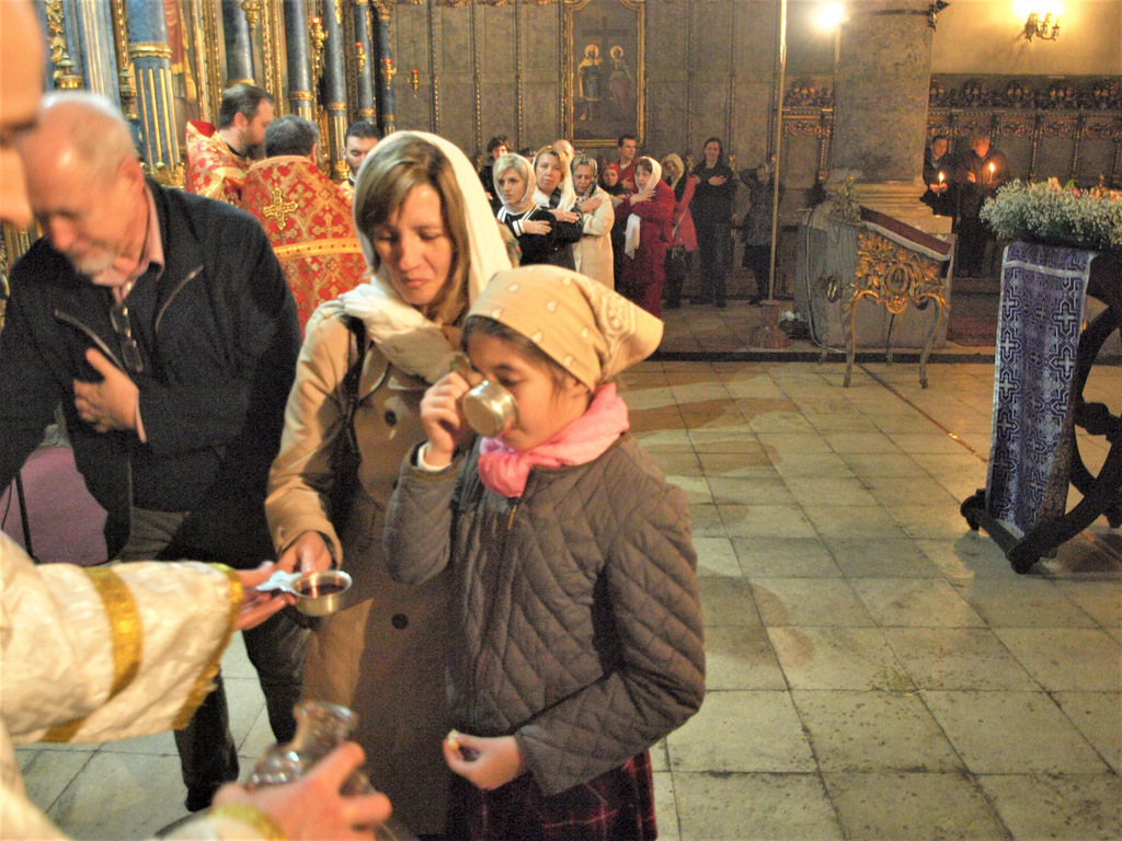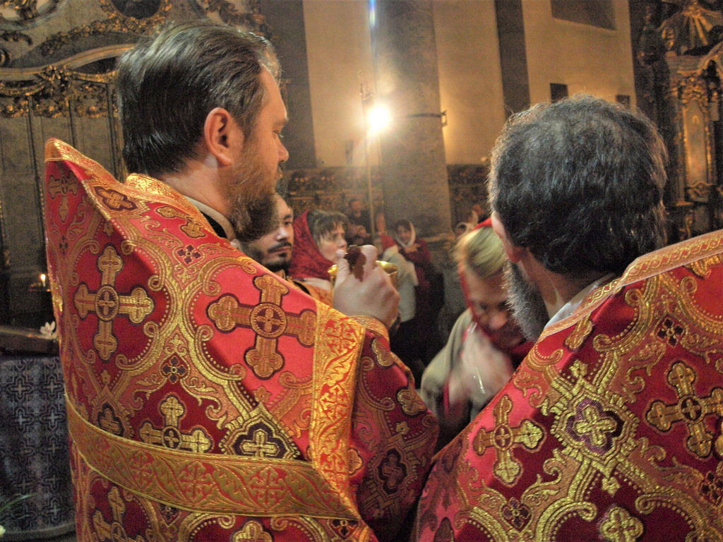 Причастие Святых Христовых Тайн как кульминация праздничного богослужения и духовной жизни прихожан наполнило их сердца пасхальной радостью. Несмотря на поздний час причащалось много детей. В общей сложности к чаше подошло 126 причастников.