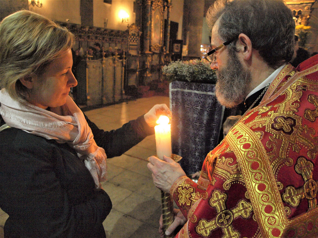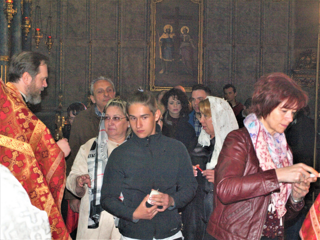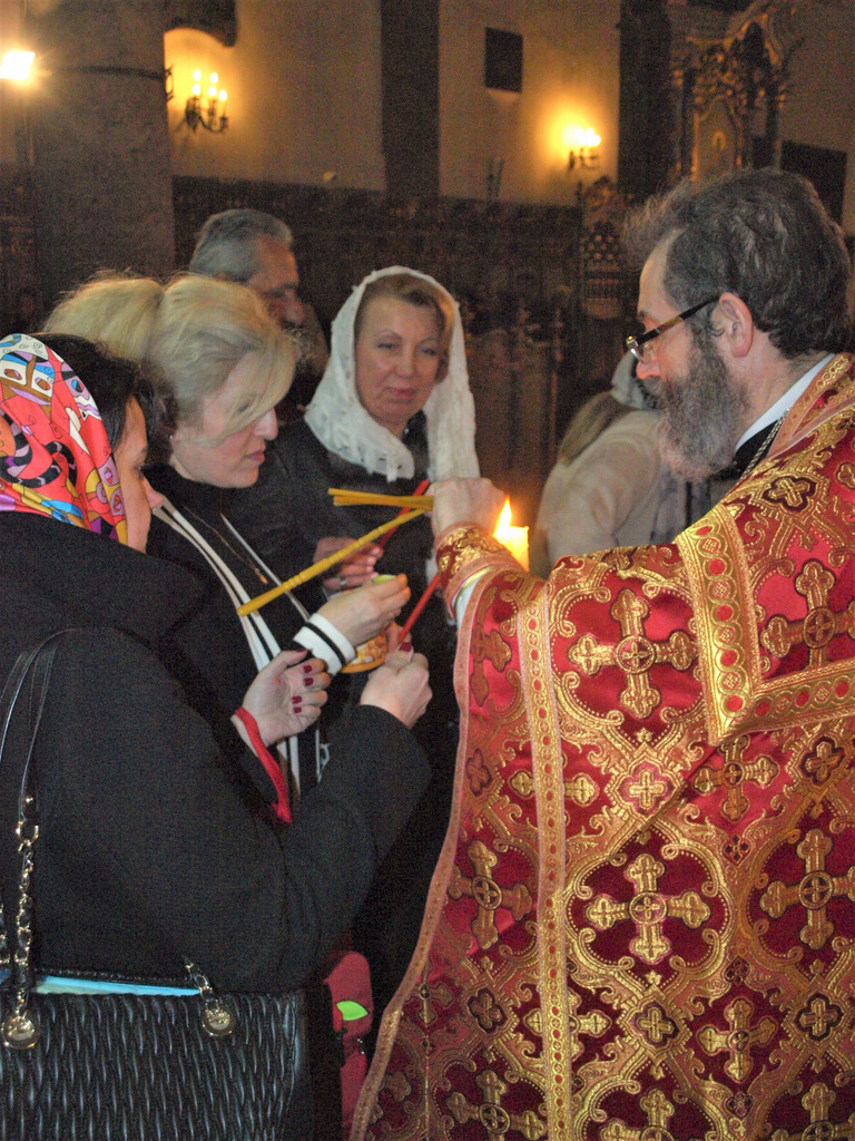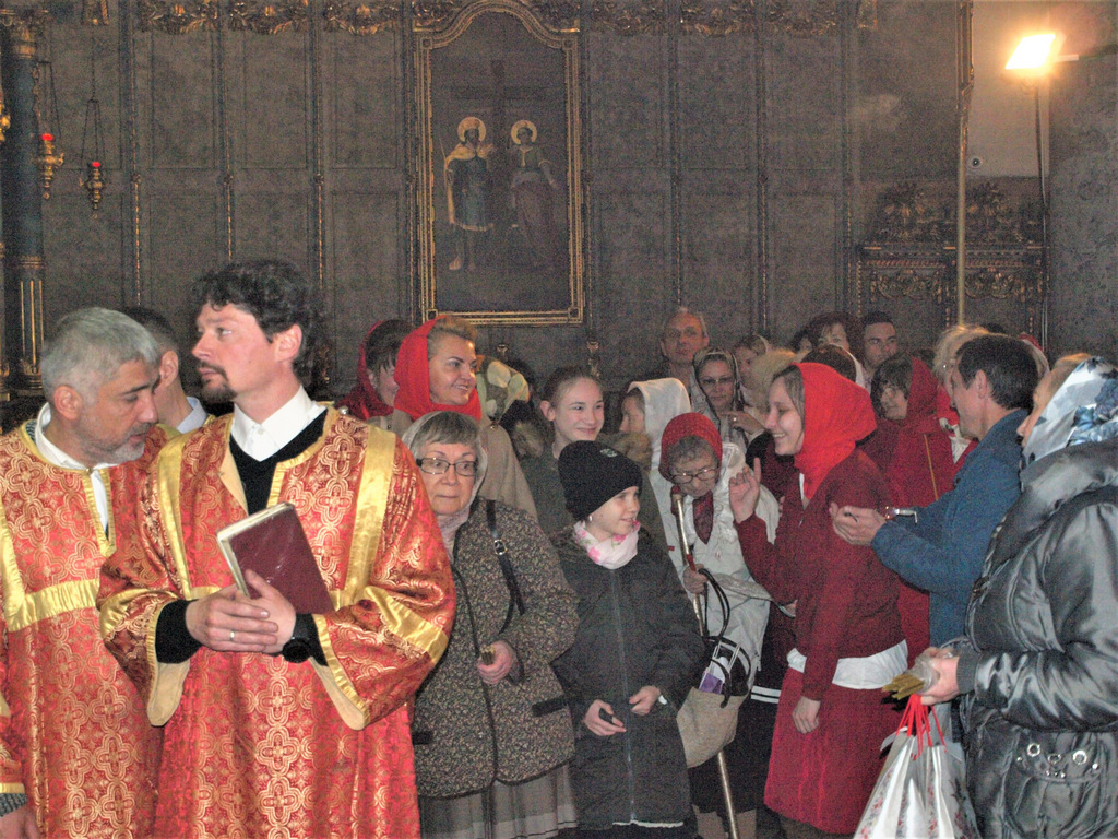 К концу службы наш приход получил подарок из Иерусалима — Благодатный огонь, от которого все пришедшие зажгли свечи и лампадки. Его привёз наш прихожанин Самуил из Румынии из аэропорта Сату Маре, куда в свою очередь он был доставлен из Иерусалима.