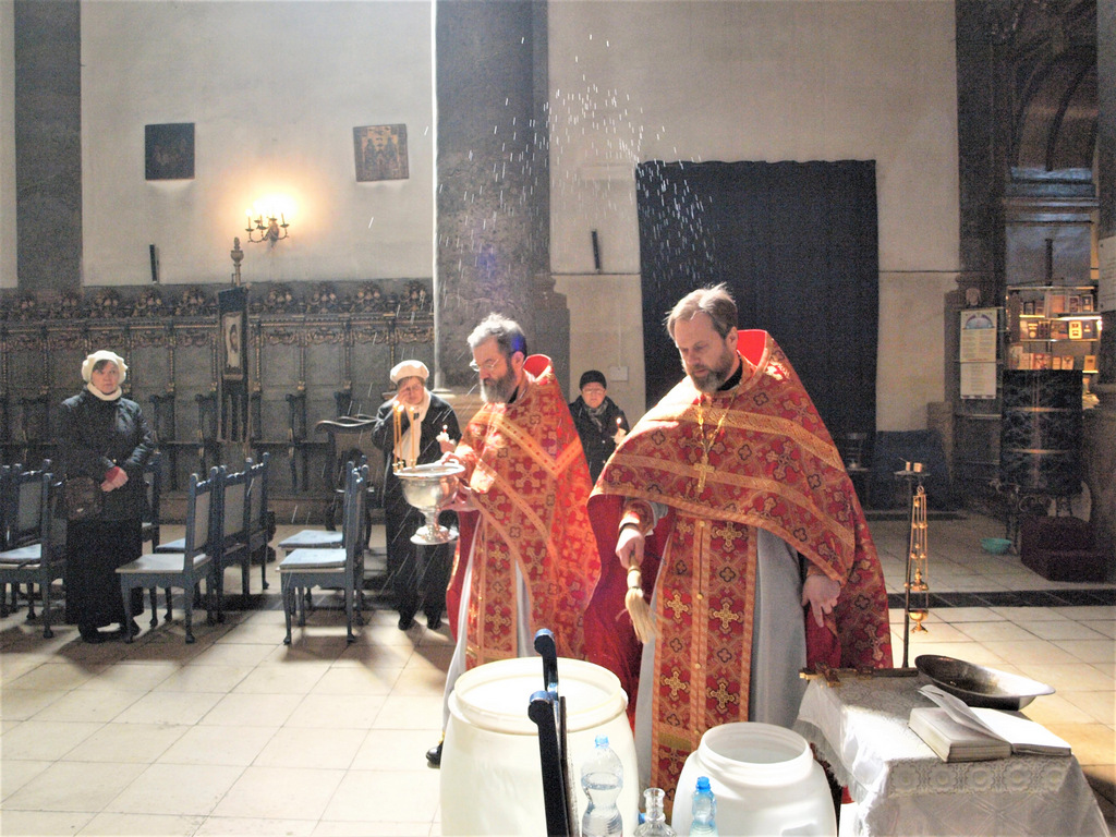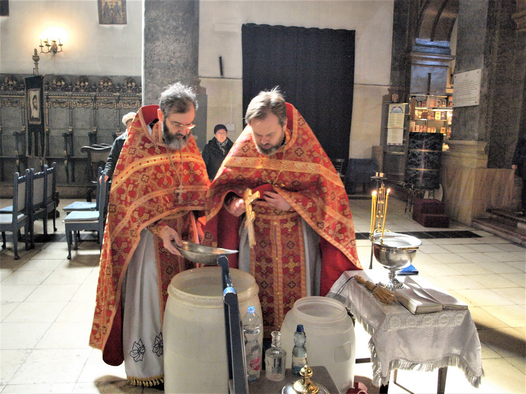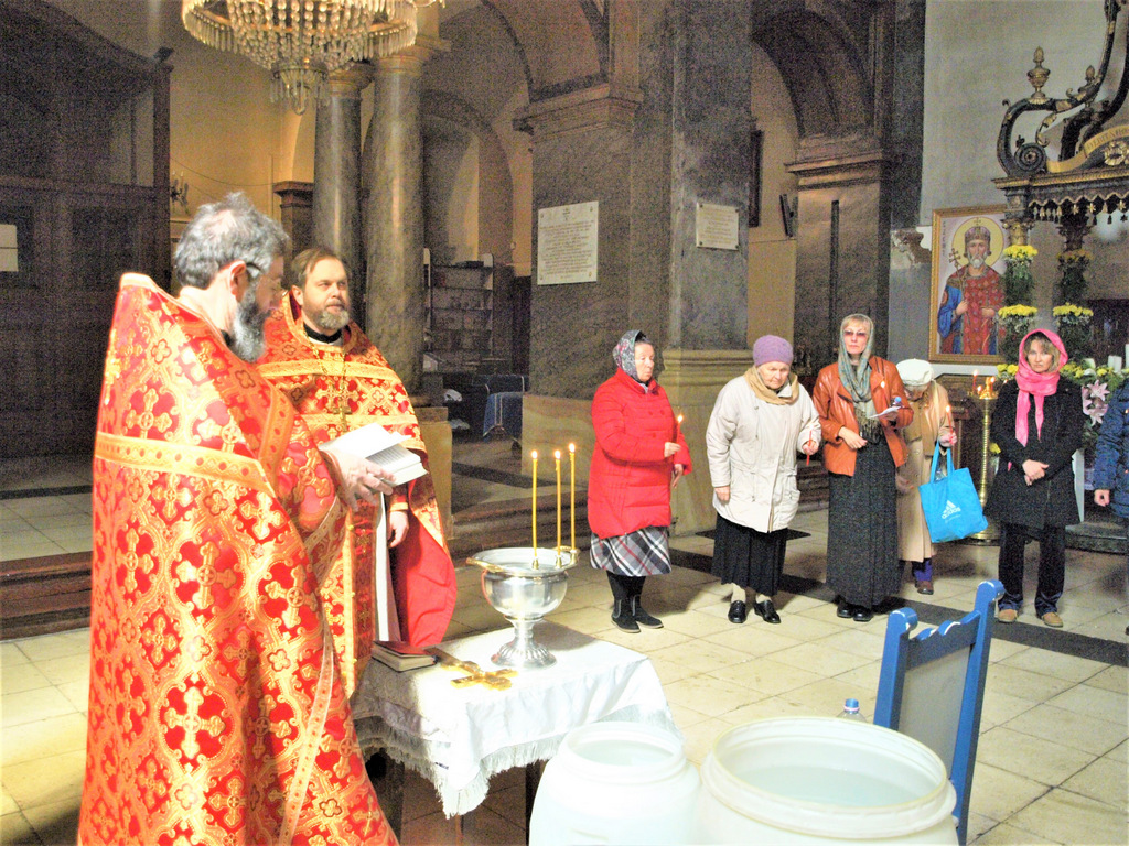 По окончании Литургии был совершен водосвятный молебен, после которого отец Димитрий поздравил верующих с праздником Пасхи – Светлого Христова Воскресения и обратился к верующим с назидательным словом.