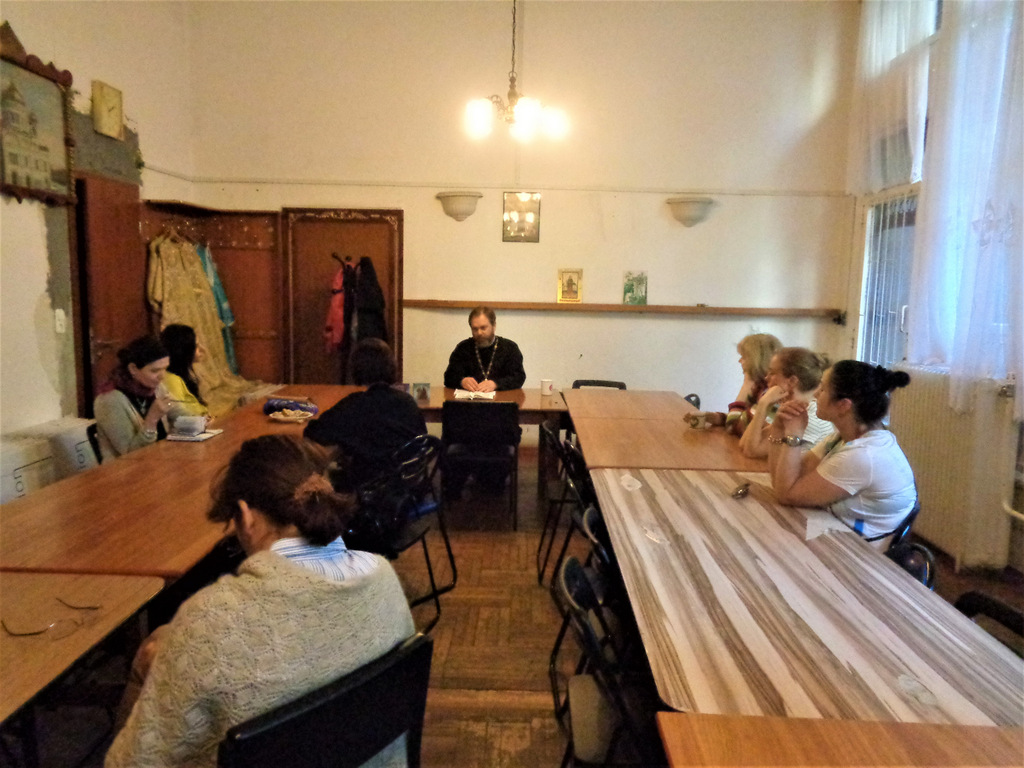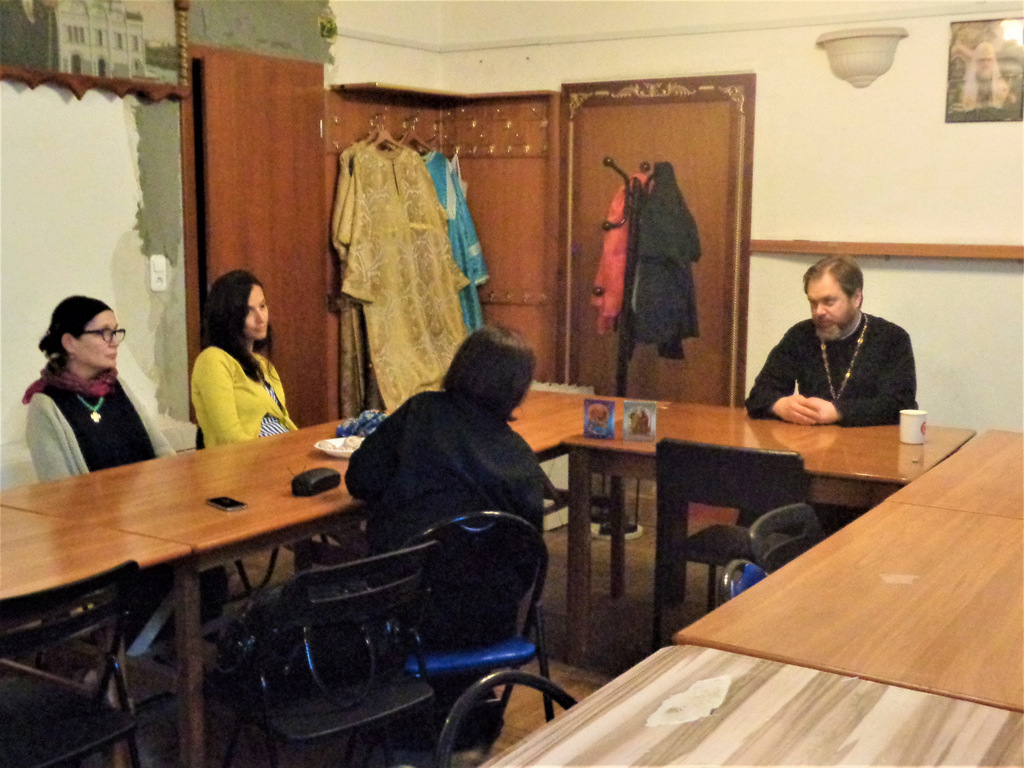 В этот раз тема занятия была посвящена изучению посланий апостола Павла. Настоятель прихода отец Димитрий Корнилов уже давно проводит подобные занятия для взрослых прихожан. Приглашаются все желающие больше узнать о православной вере и о христианстве вообще. Встречи проводятся как дискуссионные, в начале отец Димитрий читает лекцию по заявленной теме, а потом все могут задавать вопросы, общаться между собой.