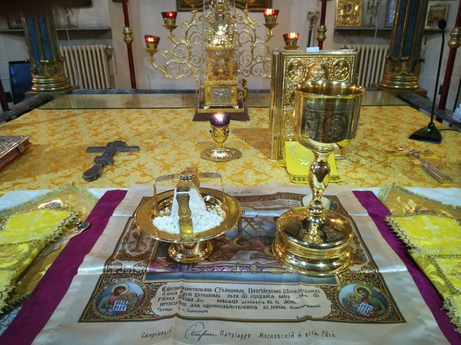 10 сентября 2017 года в Неделю 14-ю по Пятидесятнице, в день памяти обретения мощей прп. Иова Почаевского (1659) и собора преподобных отцов Киево-Печерских, в Дальних пещерах почивающих, настоятель прихода во имя Святой Троицы иерей Димитрий Корнилов возглавил служение ранней Божественной литургии в Успенском соборе г. Будапешта. Ему сослужил священник прихода иерей Святослав Булах. Хор пер под управлением регента Елены Гволик.