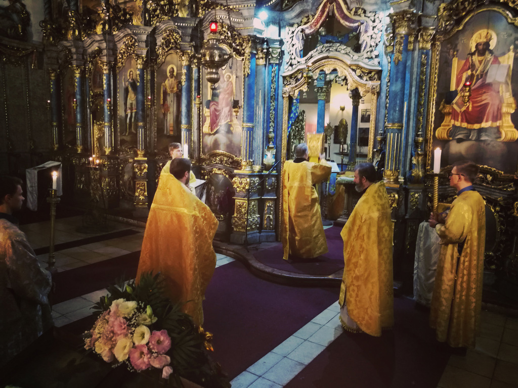 24 сентября 2017 года в Неделю 16-ю по Пятидесятнице настоятель прихода во имя Святой Троицы иерей Димитрий Корнилов возглавил служение ранней Божественной литургии в Успенском соборе г. Будапешта. Ему сослужил священник прихода иерей Святослав Булах и диакон Владимир Чепыжов.. Хор пер под управлением регента Евы Гволик.