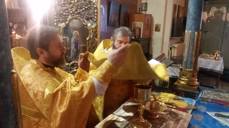 Читать далее25 сентября 2016 года, в Неделю 14-ю по Пятидесятнице, настоятель Свято-Троицкого прихода иерей Димитрий Корнилов совершил раннюю Божественную литургию в сослужении с иереем Святославом Булахом, советником-помощником правящего архиерея, вторым священником прихода, а также с диаконом Владимиром Чепыжовым.
